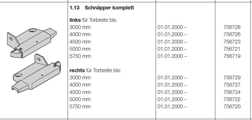 Hörmann Schnäpper komplett links für Torbreite 4500 mm für Berry DF 98