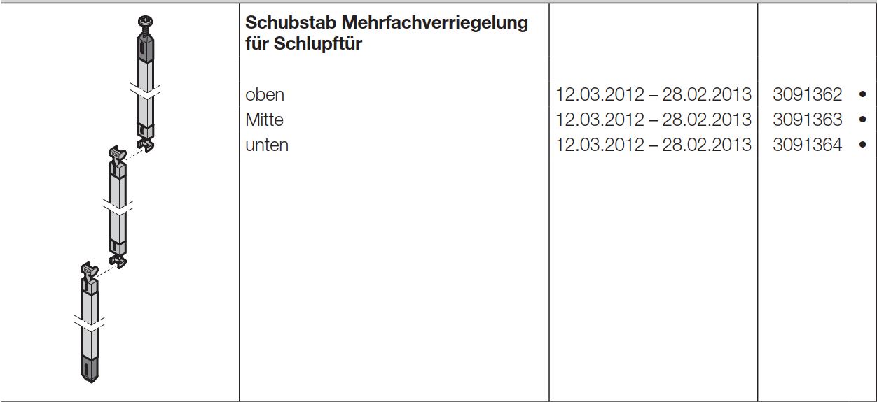 Hörmann Schubstab Mehrfachverriegelung für Schlupftür oben für Baureihe 40 und Industrie-Baureihe 40-50