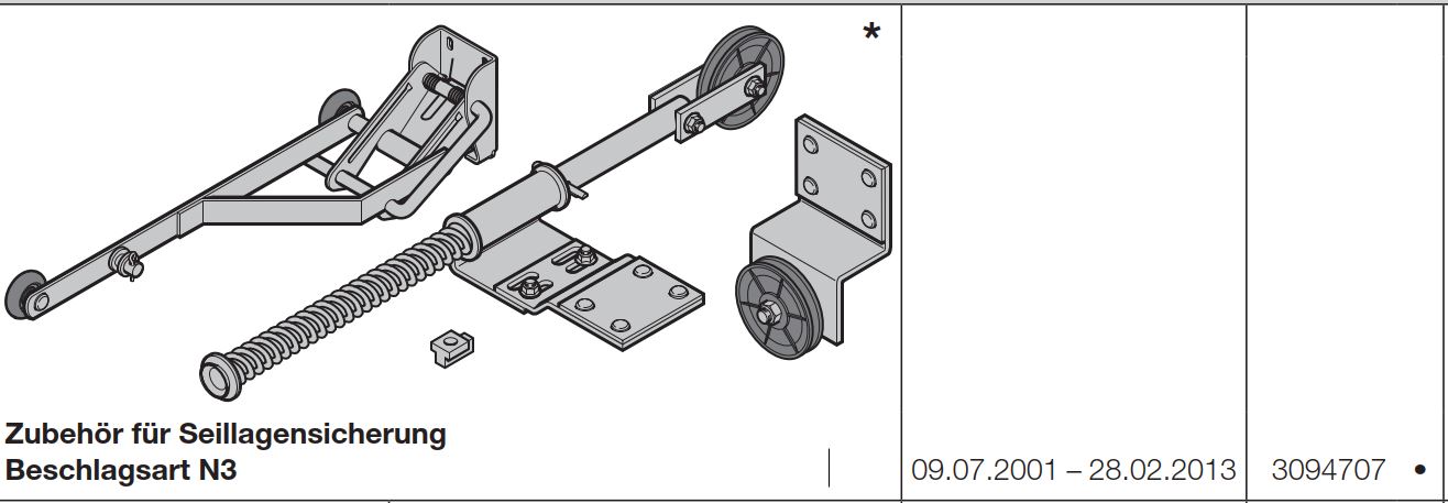 Hörmann Seillagensicherung Beschlags Art N3 für die Industrietore der Baureihe 30-40-50