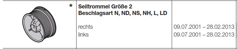 Hörmann Seiltrommel Größe 2 Beschlagsart N, ND, NS, NH, L, LD links für die Industrietore der Baureihe 30, 40, 50, 60