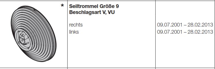 Hörmann Seiltrommel Größe 9 Beschlagsart V, VU links für die Industrietore der Baureihe 30, 40, 50, 60