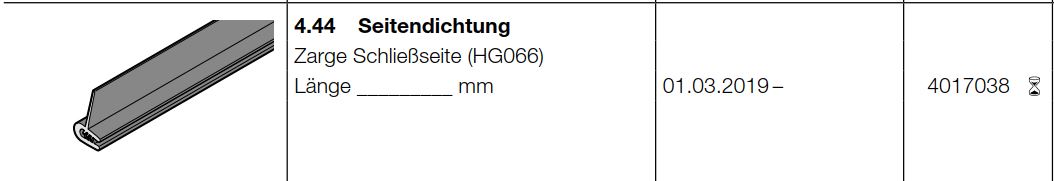 Hörmann Seitendichtung, (HST 42), BR 20, 30, Seiten-Sektionaltor