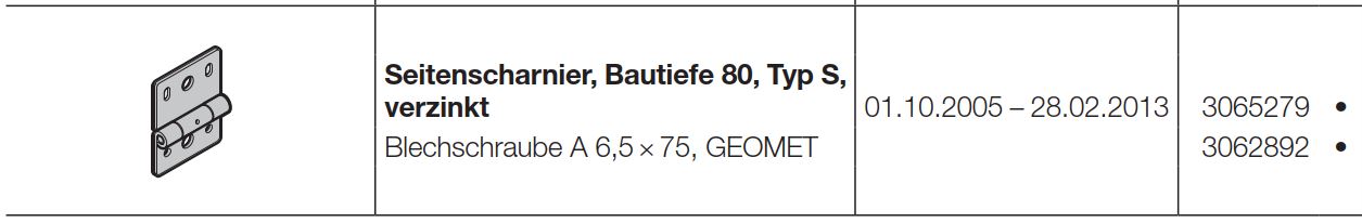Hörmann Seitenscharnier Bautiefe 80 Typ S verzinkt Industrie-Baureihe 30-40 und 50