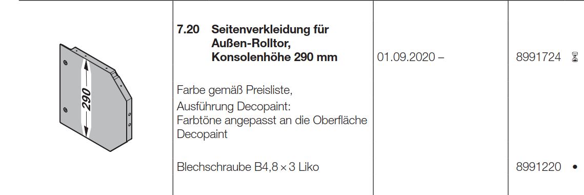 Hörmann Seitenverkleidung, Konsolenhöhe 290 mm RollMatic