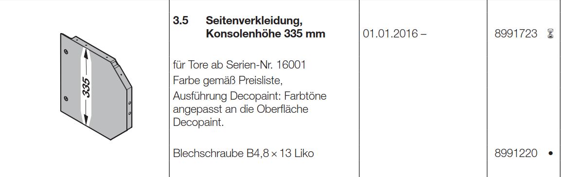 Hörmann Seitenverkleidung, Konsolenhöhe 335 mm RollMatic