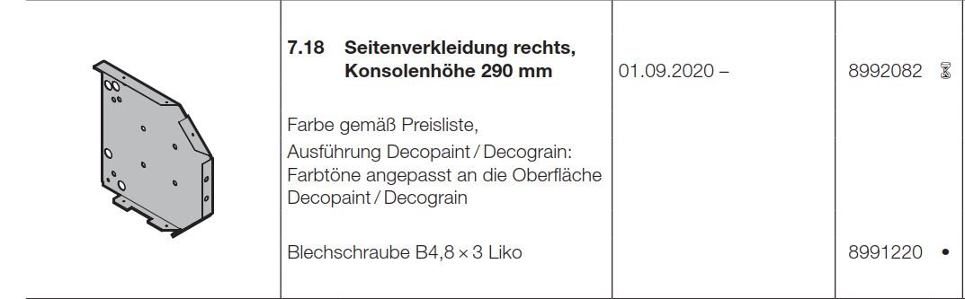 Hörmann Seitenverkleidung rechts, Konsolenhöhe 290 mm Garagen-Rolltor RollMatic T