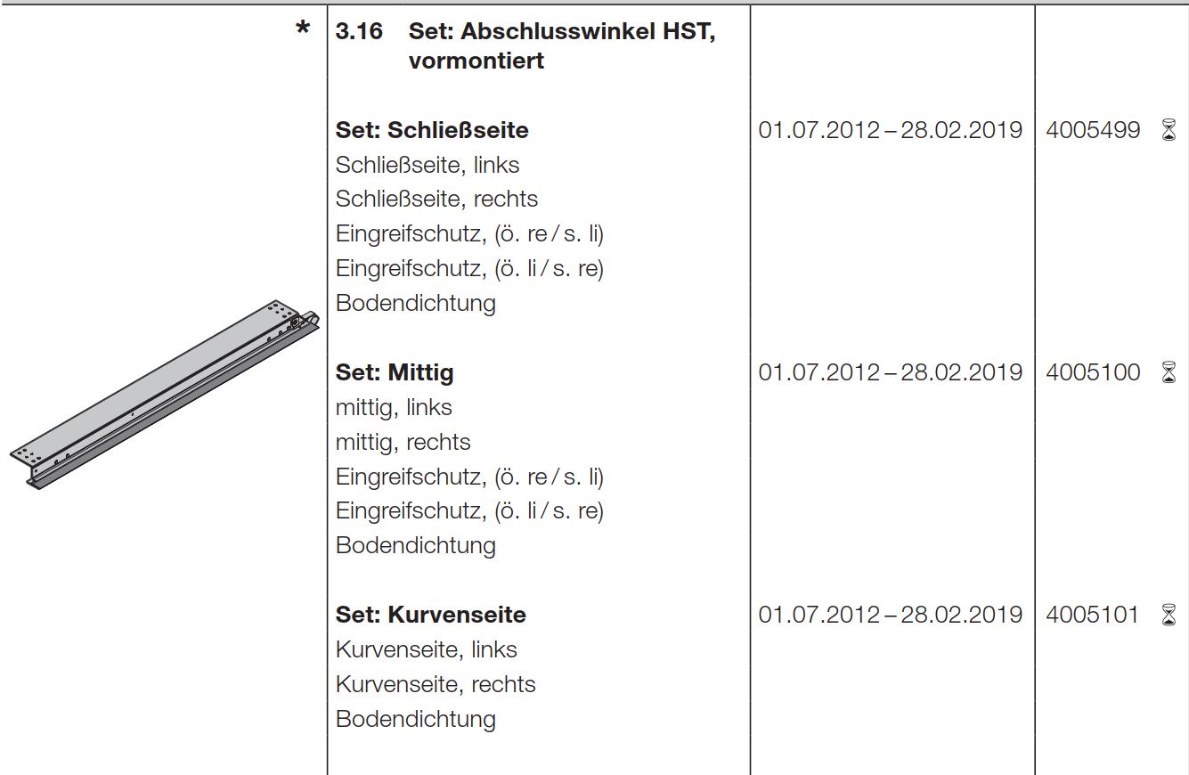 Hörmann Set: Abschlusswinkel HST, 4005100, vormontiert Mitte, BR10, Seiten-Sektionaltor