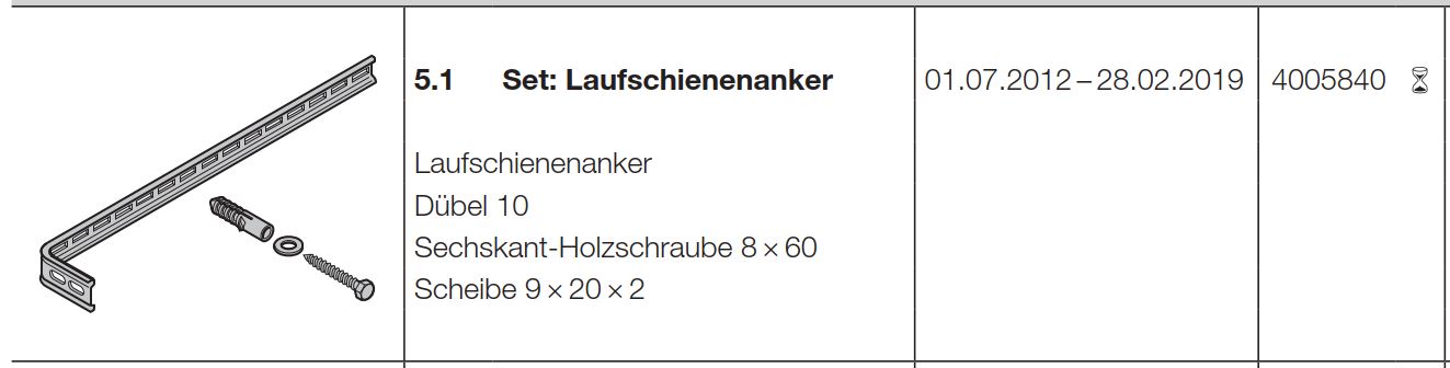 Hörmann Set: Laufschienenanker (HST 42) Seiten-Sektionaltor