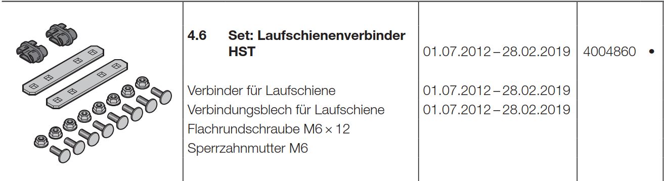 Hörmann Set: Laufschienenverbinder, 4004860, (HST42), Seiten-Sektionaltor