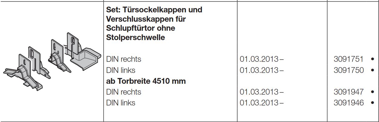 Hörmann Set Türsockelkappen und Verschlusskappen für Schlupftürtor ohne Stolperschwelle ab Torbreite 4510 mm DIN rechts der Baureihe 50