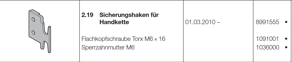 Hörmann Sicherungshaken für die Handkette für Innen-Rolltor und Rollgitter RollMatic handbetätigt