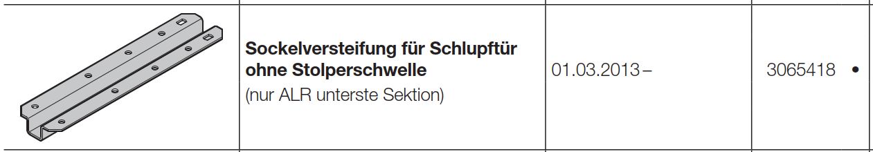 Hörmann Sockelversteifung für Schlupftür ohne Stolperschwelle nur ALR der Baureihe 50