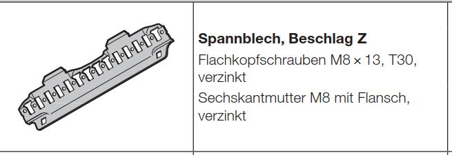 Hörmann Spannblech verzinkt, für den Beschlag Z, Baureihe 40