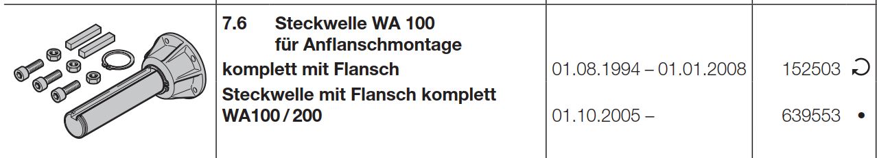 Hörmann Steckwelle mit Flansch für Anflanschmontage WA100 / 200