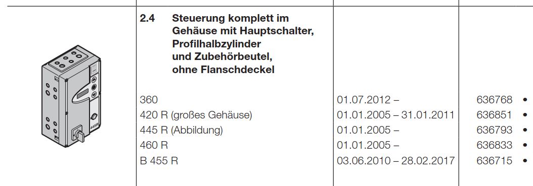 Hörmann Steuerung 445 R ohne Abbildung komplett mit Hauptschalter, Profilzylinder