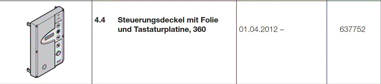 Hörmann Steuerungsdeckel mit Folie und Tastaturplatine 360