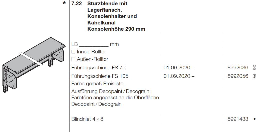 Hörmann Sturzblende mit Lagerflansch, Konsolenhöhe 290 mm FS 75 Garagen-Rolltor RollMatic T