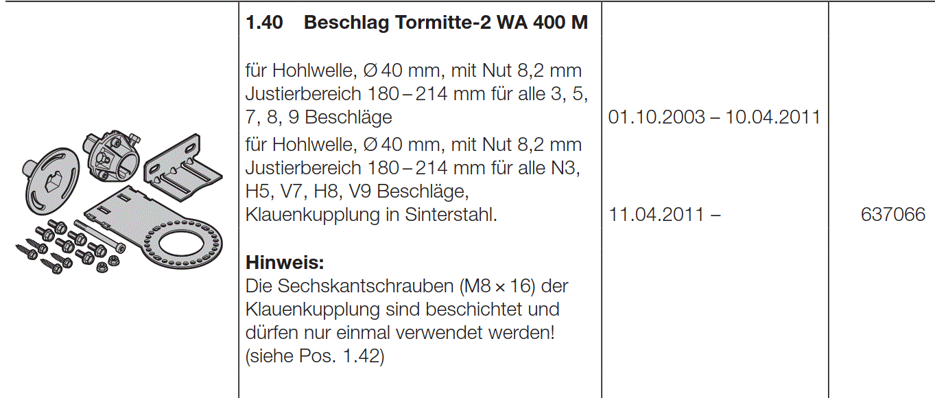 Hörmann Torbeschlag Tormitte-2 WA 400 M / 500 M