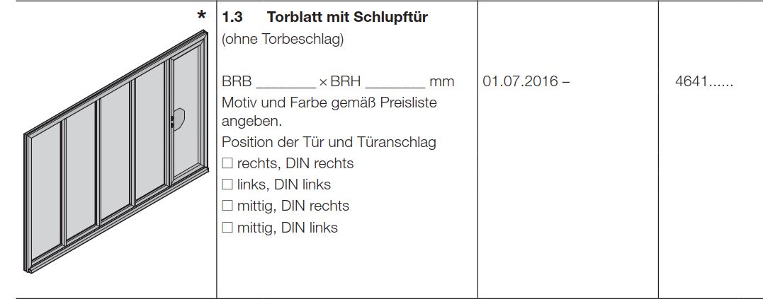 Hörmann Torblatt mit Schlupftür für Doppelgaragen-Schwingtor N 500