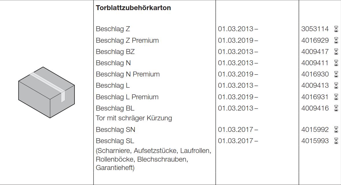 Hörmann Torblatt Zubehörkarton Beschlag N, 4009411,für Baureihe 40
