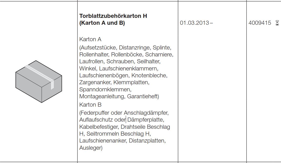 Hörmann Torblatt Zubehörkarton H (Karton A und B) Baureihe 40