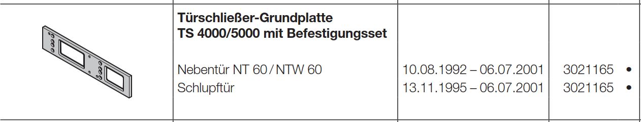 Hörmann Türschließer-Grundplatte, TS 4000-5000 mit Befestigungsset Nebentür NT 60 NTW 60