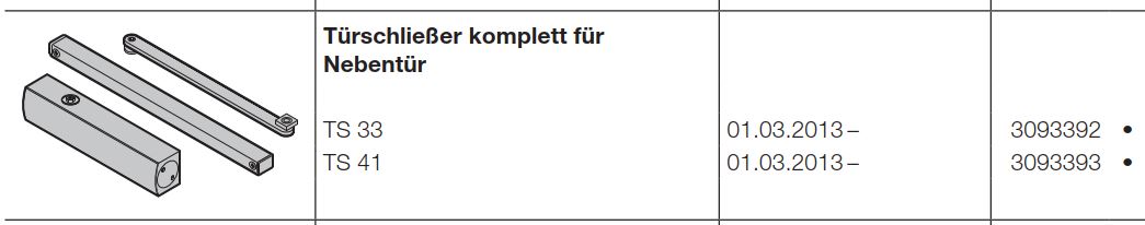 Hörmann Türschließer komplett TS 41 für Nebentür Baureihe 40, 50, 60