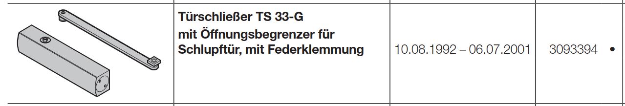 Hörmann Türschließer TS 33-G mit Öffnungsbegrenzer für Schlupftür mit Federklemmung
