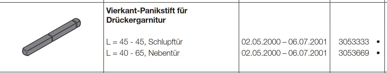 Hörmann Vierkantdrücker–Wechselstift L = 110 für Drückergarnitur NT 60 ohne Stangengriff, NT 80 mit Stangengriff