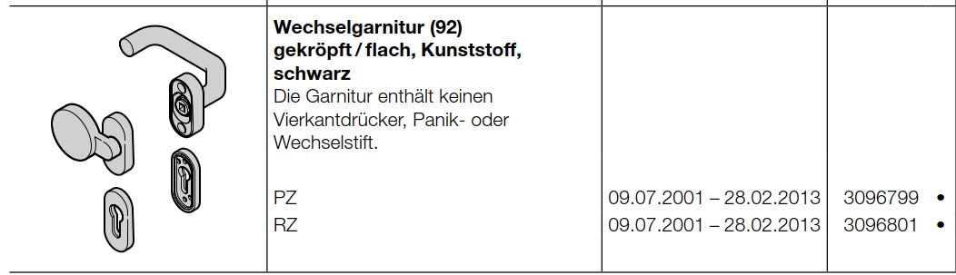 Hörmann Wechselgarnitur (92) gekröpft/flach, Kunststoff, schwarz, Schlupftür PZ für Baureihe 30, 40, 50