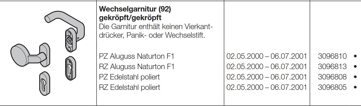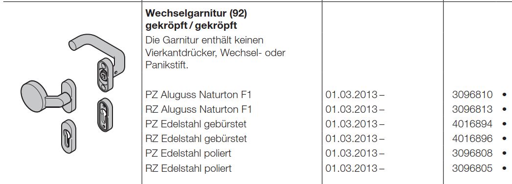 Hörmann Wechselgarnitur (92) gekröpft-gekröpft Aluguss Naturtone F1
