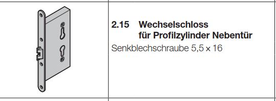 Hörmann Wechselschloss für Profilzylinder Nebentür