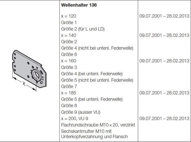 Hörmann Wellenhalter X 120 Größe 1 Größe 2 (für L und LD) für die Industrietor 30-40-50 Baureihe