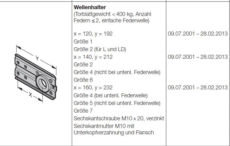 Hörmann Wellenhalter x140-Torblattgewicht 400 kg-Anzahl Federn kleiner 2-einfache Federwelle