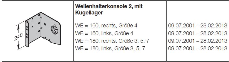 Hörmann Wellenhalterkonsole 2 mit Kugellager WE 180 rechts Größe 3-5-7 für die Industrietor Baureihe 30-40-50