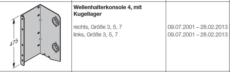 Hörmann Wellenhalterkonsole 4 mit Kugellager links Größe 3-5-7 für die Industrietor Baureihe 30-40-50