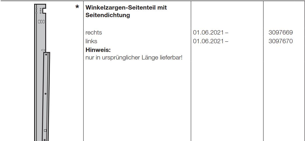 Hörmann Winkelzargen-Seitenteil links mit Seitendichtung für Industrietore-Baureihe 60