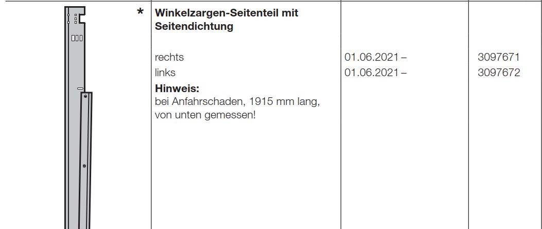 Hörmann Winkelzargen-Seitenteil rechts, bei Anfahrschaden für Industrietore-Baureihe 60