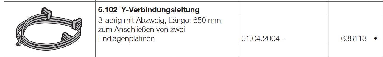 Hörmann Y-Verbindungsleitung 3-adrig mit Abzweig Länge 650 mm zum Anschließen von zwei Endlagenplatinen