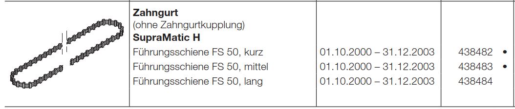 Hörmann Zahngurt ohne Zahngurtkupplung, Führungsschiene FS 50, mittel