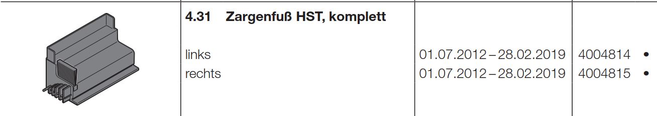 Hörmann Zargenfuß komplett rechts (HST 42) BR10, Seiten-Sektionaltor