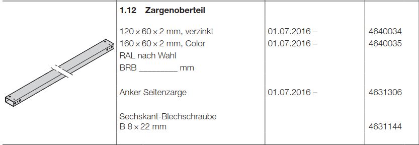 Hörmann Zargenoberteil in Color, Doppelgaragen Schwingtor N 500