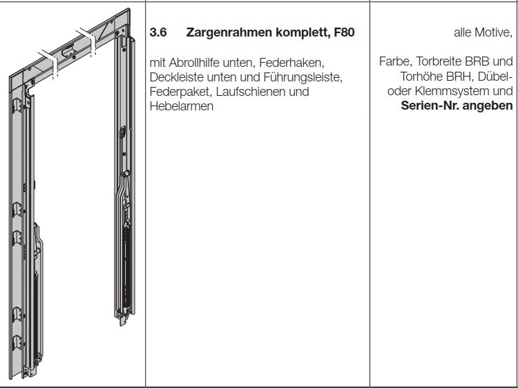 Hörmann Zargenrahmen komplett F80 Schwingtor