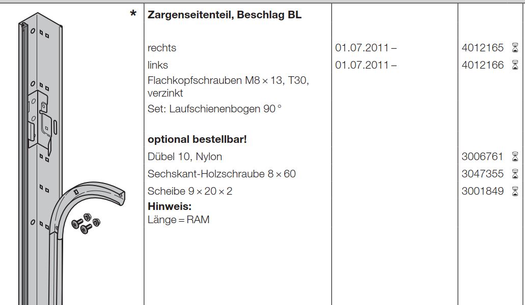 Hörmann Zargenseitenteil Beschlag BL, links, für die Baureihe 40