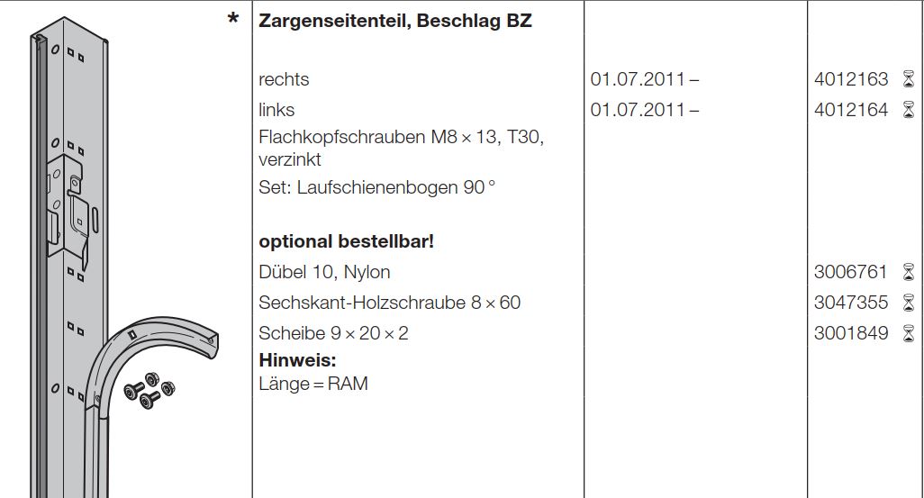 Hörmann Zargenseitenteil Beschlag BZ, rechts, für die 40er Baureihe