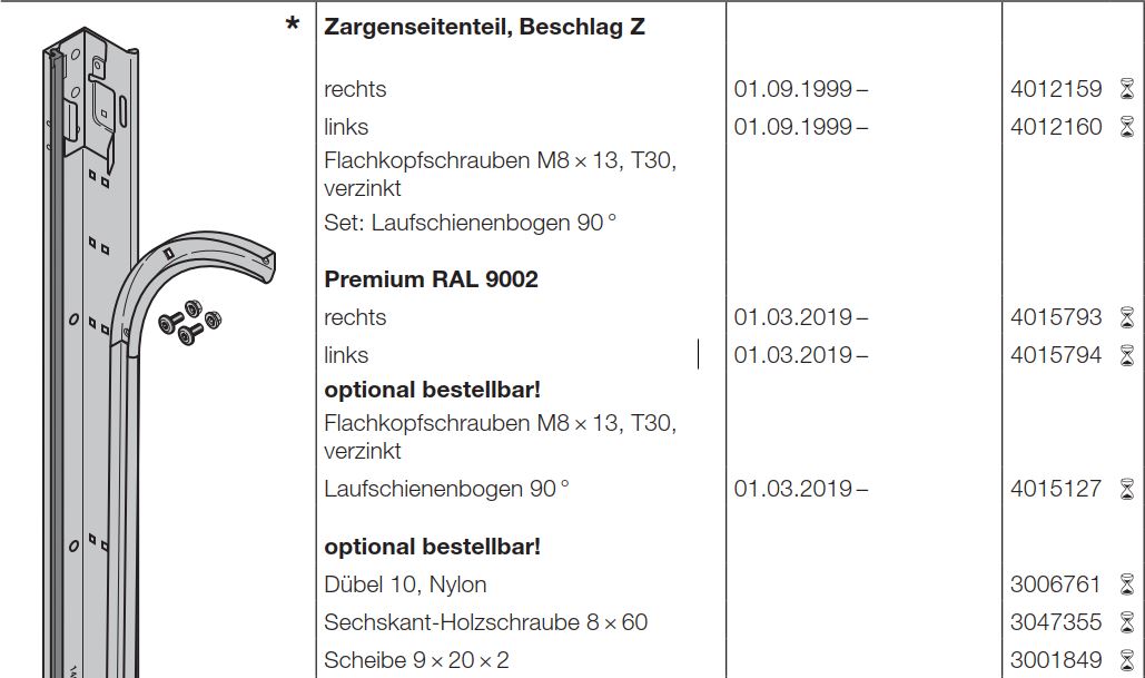Hörmann Zargenseitenteil links, Baureihe 40 Beschlag Z