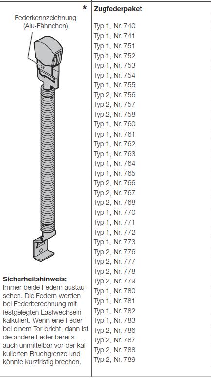 Hörmann Zugfederpaket Typ 1, Nr.783, für Ecostar, Renomatic, Baureihe 40, Z-Beschlag