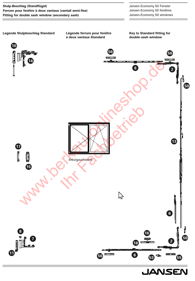 Jansen-Economy 50 Fenster, Mittenverriegelung, 599.414, FFH 1801-2300, für Drehkipp- und Drehbeschlag