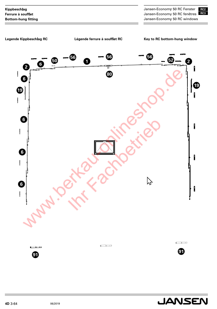 Jansen-Economy 50 RC Fenster, RC2, RC3 Kippbeschläge, Eckumlenkung, Artikel Nummer 599.486