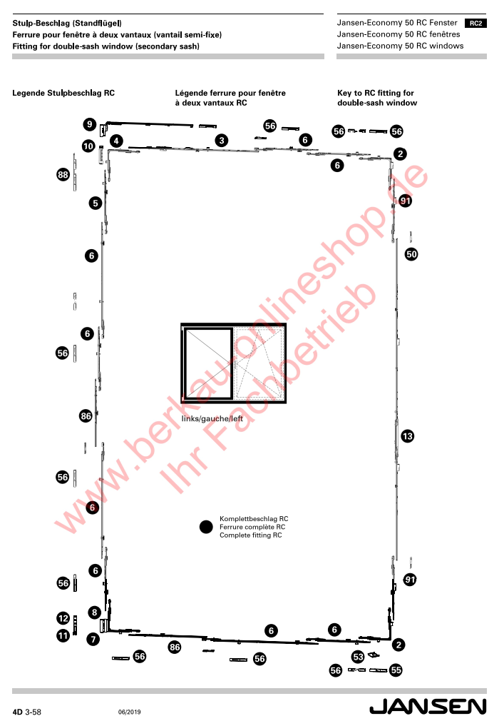 Jansen-Economy 50 RC Fenster, Stulp-Beschlag (Standflügel) RC2, Mittenverriegelung, Artikel Nummer 599.493